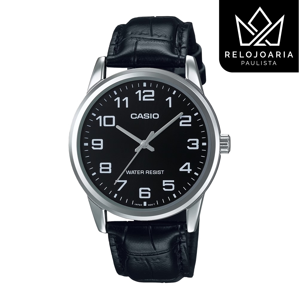 Relógio Casio original, masculino, analógico, prateado e leve. Caixa de aço e pulseira de couro. Design simples redondo que nunca sai da moda, visor de fácil leitura e confortável de usar. Resistente à água. Tamanho médio (3,8 cm).